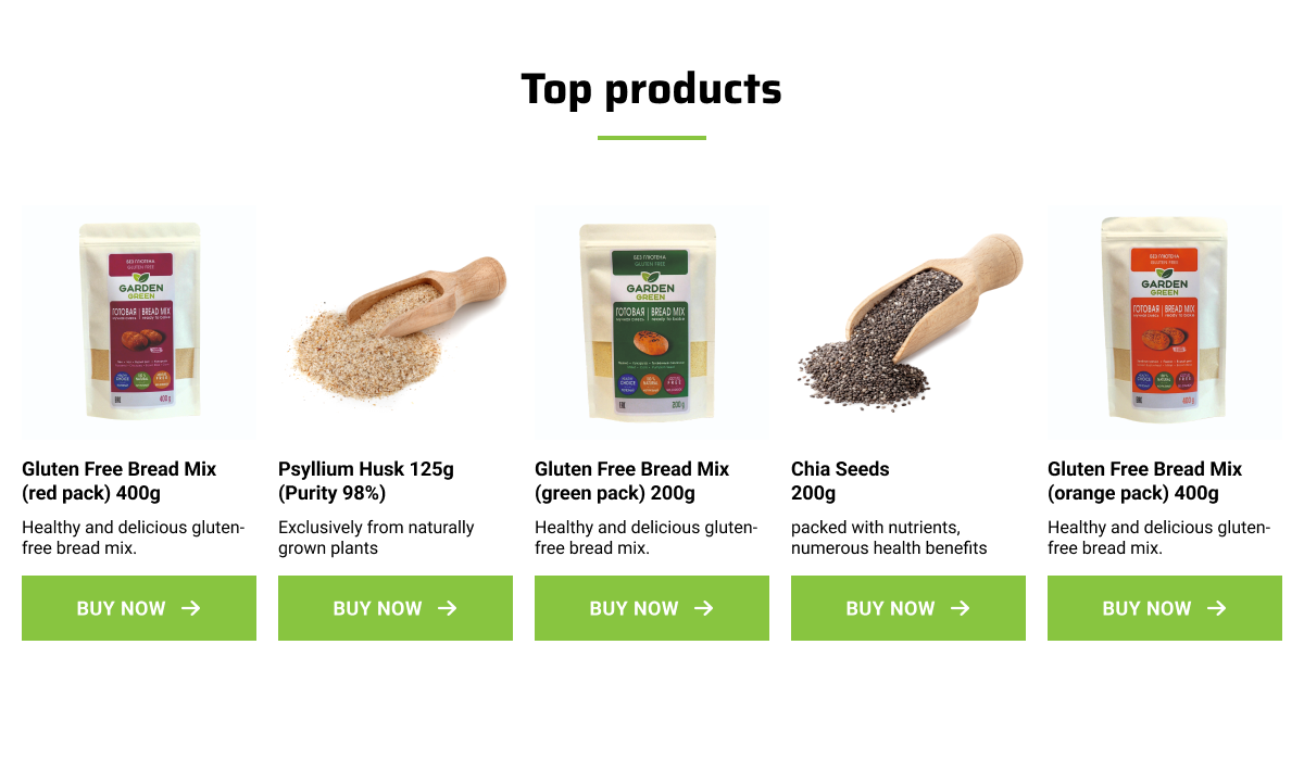 Hauptprodukte:Glutenfreie Brotback mischung (3 Sorten),Psyllium mehl, Flohs amensc halen, Chia samen, Roter Reis